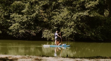 The Indre, a small river that flows into the Loire and crosses the campground, is calm and easy to navigate. During the season, we offer paddleboard rentals from the campground (thanks to our partner Paule & Mike) so you can admire this wild environment from the river. You can paddle all the way to the foot of the castle, a view you wouldn’t otherwise be able to enjoy! It’s an ideal outing for groups. You can also try the “castle aperitif” option on a giant paddleboard, with a breathtaking view of the illuminated castle.